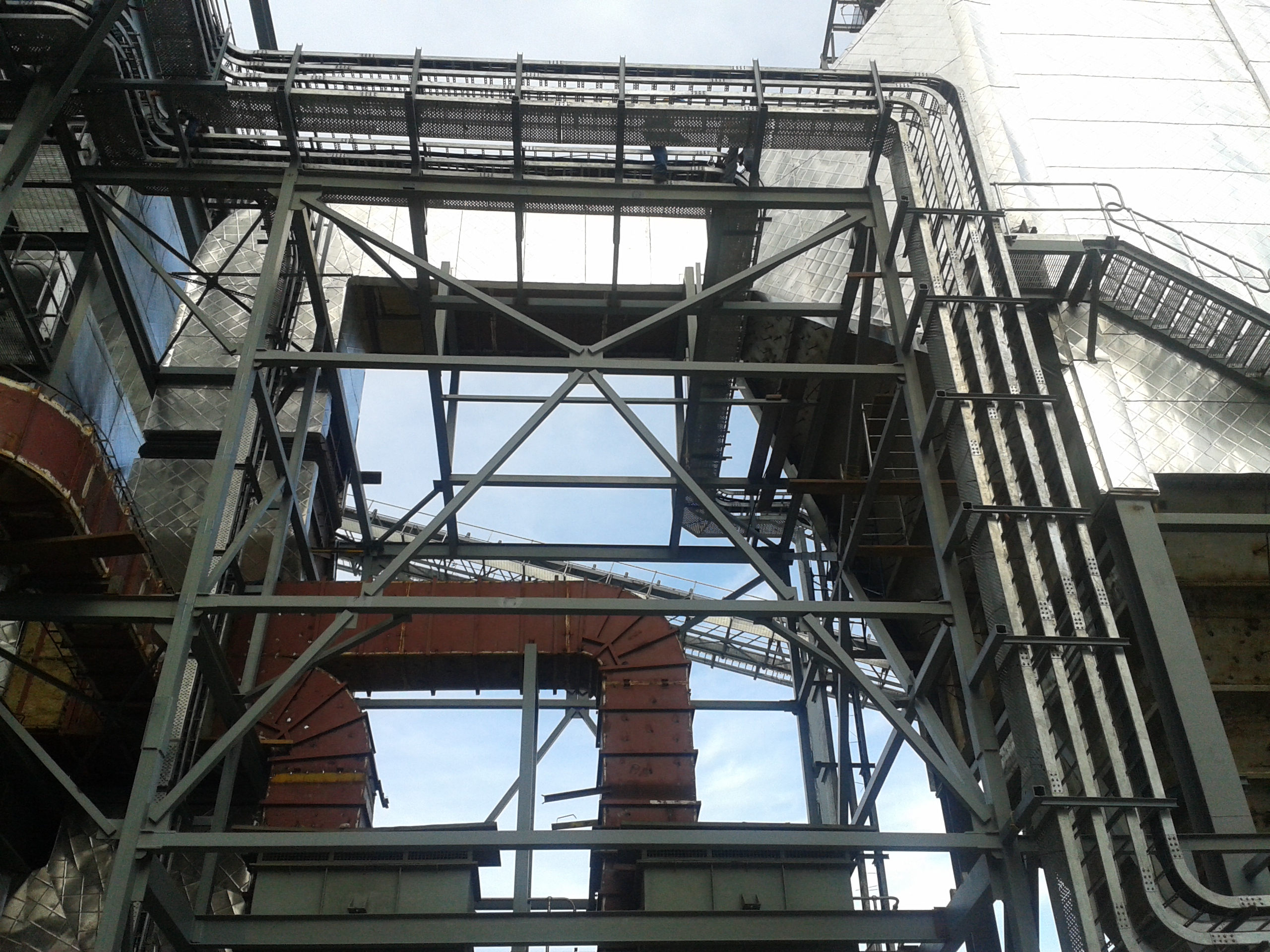 Obras ejecutadas: en las diferentes áreas (caldera, edificio de máquinas, bandas transportadoras, silos de ceniza, torre de enfriamiento, precipitador, chimeneas, planta de tratamiento de agua, subestaciones)