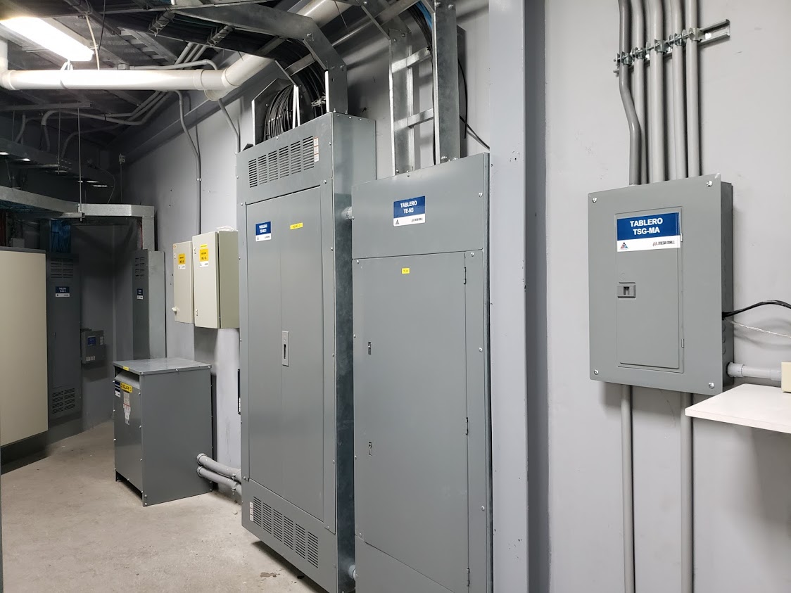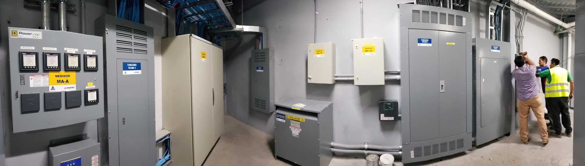 • Montaje de equipos eléctricos en baja tensión para distribución de energía a los locales, escaleras eléctricas y elevadores.
